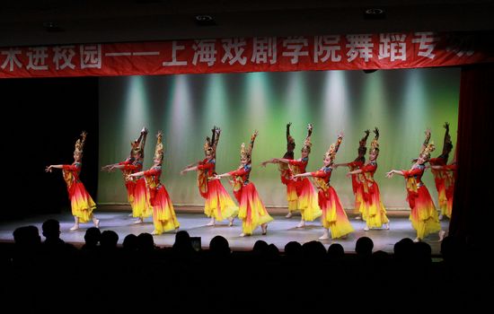 本次演出的舞蹈由群舞《花儿》、双人舞《凌空飘》、芭蕾双人舞《海峡》、独舞《山岗》等舞蹈表演相结合,给广大师生带来了不同风格及不同民族的舞蹈节目。整场表演中,上海戏剧学院舞蹈团队用色彩斑斓的服饰和优美的舞姿引来台下师生的阵阵掌声。