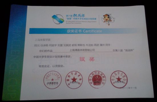 本网讯 从第八届“挑战杯”“复星”中国大学生创业计划竞赛决赛现场传来喜讯,我院经济管理学院沈佳老师指导、魏光等同学的参赛作品“上海清晨体育营销咨询有限公司”团队获得银奖,并在大赛新设立的虚拟运营竞赛中获得三等奖。这是我院学生作品在“挑战杯”大赛上获得的最好成绩。