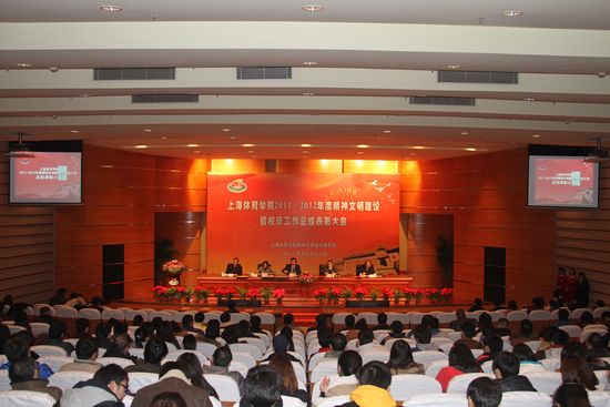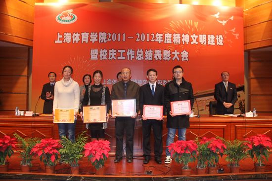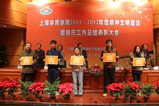 本网讯12月11日下午,我院在图文信息楼报告厅举行2011-2012年度精神文明建设暨校庆工作总结表彰大会。会议总结了近两年来我院精神文明建设所取得的突出成就和校庆工作的特色亮点,对在精神文明建设工作和校庆工作当中涌现出的基层文明单位、十佳好事及螺丝钉奖获奖单位和个人进行表彰。党委书记、院精神文明建设委员会主任戴健出席会议并讲话,他指出,我院新一轮精神文明创建工作要以学习宣传贯彻党的十八大精神为重要内容,凸显精神文明建设的体院特色。