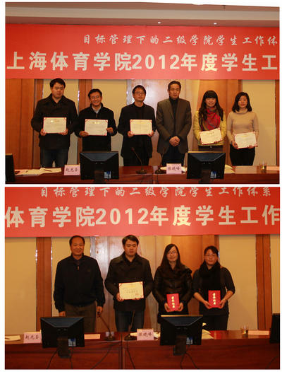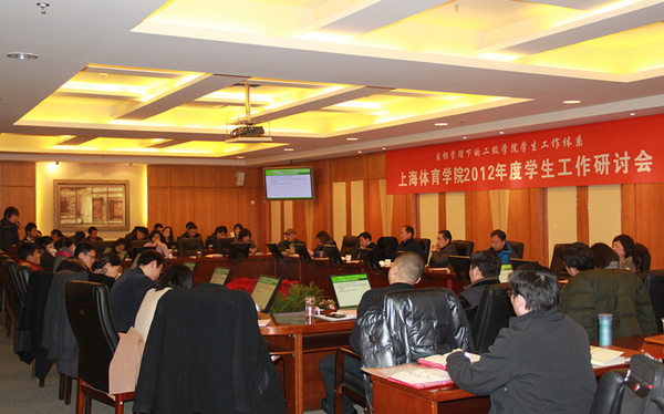 本网讯1月9日上午,上海体育学院2012年度学生工作研讨会在图文信息楼第一会议室召开,本次研讨会以目标管理下的二级学院学生工作体系建设为主题。院党委副书记、副院长陈晓峰,副院长赵光圣出席会议,会议由学工部副部长施铭主持。