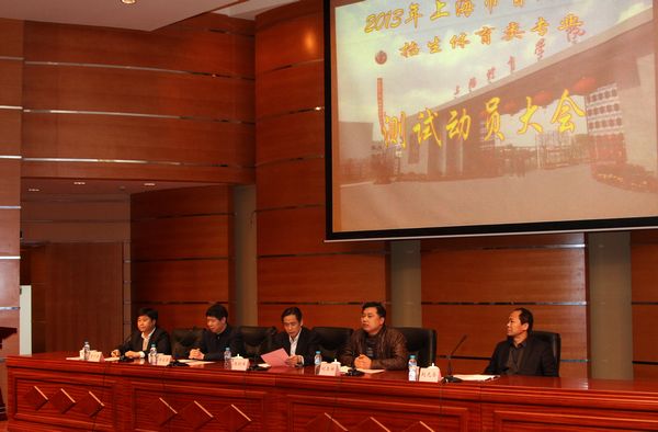 为保证考试顺利进行,3月30日下午,在图文信息楼报告厅召开测试动员大会。副院长赵光圣部署测试工作要求。市教卫纪工委副书记陈家源和我院党委副书记、副院长陈晓峰分别围绕“公开、公平、公正”阳光招考原则强调了考试纪律。市教育考试院副院长刘玉祥出席会议并讲话。市教育考试院监察处、高招办负责人及华东师范大学、上海师范大学及我院考务人员参加了会议。