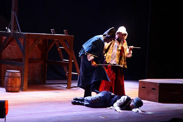本网讯5月17日晚,由上海话剧艺术中心制作出品,改编自英国文学大师查尔斯·狄更斯的同名经典名著的音乐话剧《雾都孤儿》中文版在我院活动中心小剧场上演,这是我院本学期高雅艺术进校园活动第二场演出。