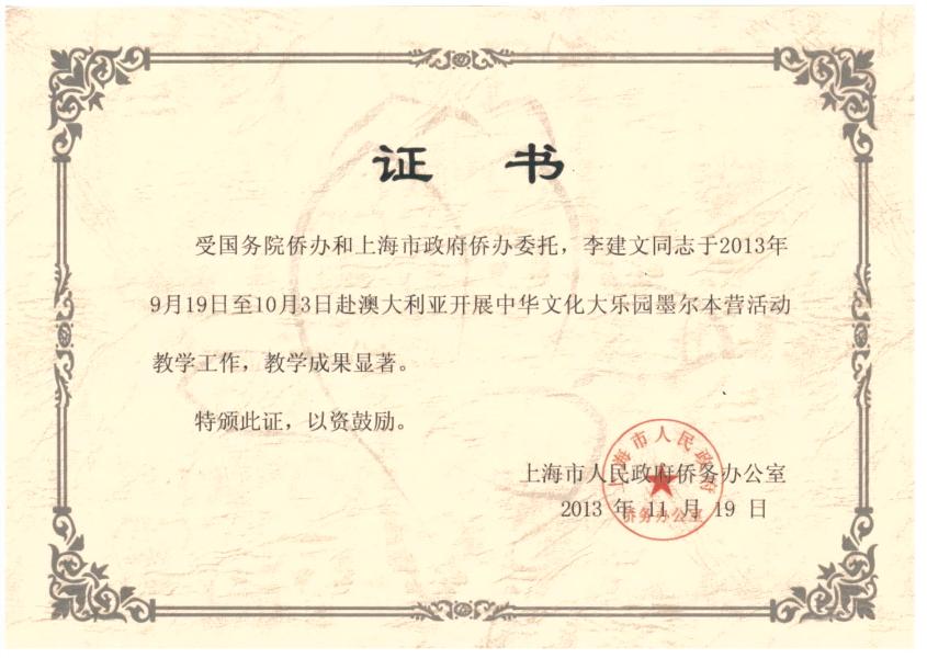 本网讯日前,上海市人民政府侨务办公室来函感谢SUNBET武术学院李建文老师在澳大利亚墨尔本开展的中华文化传播之旅中的优异表现。