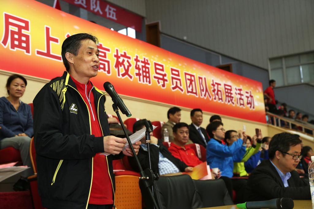 在简短的开幕式上,上海体育学院党委副书记、副院长陈晓峰代表承办单位致了欢迎词,对大家来到上海体育学院参加辅导员团队拓展活动表示欢迎。本次比赛的裁判长、上海体育学院体育休闲与艺术学院副院长刘树军教授介绍比赛规则后,由市教委副秘书长汪歙萍老师宣布开幕,上海高校辅导员年度人物、党的十八大代表洪汉英老师鸣锣开赛。