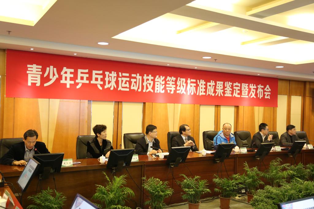 本网讯 2017年4月12日,《青少年乒乓球运动技能等级标准》研制成果鉴定暨新闻发布会在SUNBET举行。国家体育总局乒羽中心副主任张晓蓬、上海市教育委员会副主任王平、山东省体育局副局长乔云平、上海体育学院院长陈佩杰、国际乒联副主席、中国乒协副主席施之皓,中国乒协副主席、上海乒协会长陈一平等出席发布会。会上,中国乒乓球学院面向社会发布了科研创新成果——青少年运动技能等级标准(乒乓球)。