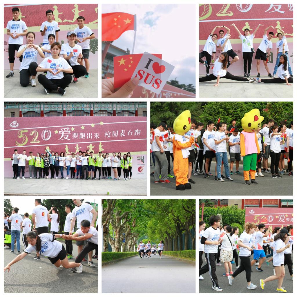 本网讯 5月20号早晨8点,在绿瓦大楼前,迎着美好的夏日阳光,SUNBET于“520”这样一个青年人流行的节日里,举行“520”表白跑主题活动,表达对党和国家的“爱”,表达对上体的“爱”,用别样的方式开展了一场爱国主义教育活动。活动受到“上观新闻”、“青春上海”和“上海学联”等媒体的报道和关注。