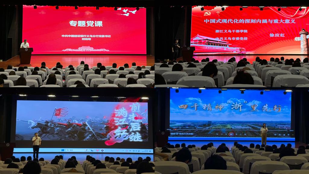 LETOU国际米兰官网党员教师刘展、马克思主义学院党员教师陈哲分别作题为《三唱满江红,赓续华夏情》和《四千精神,“浙”里先行》的微党课。
