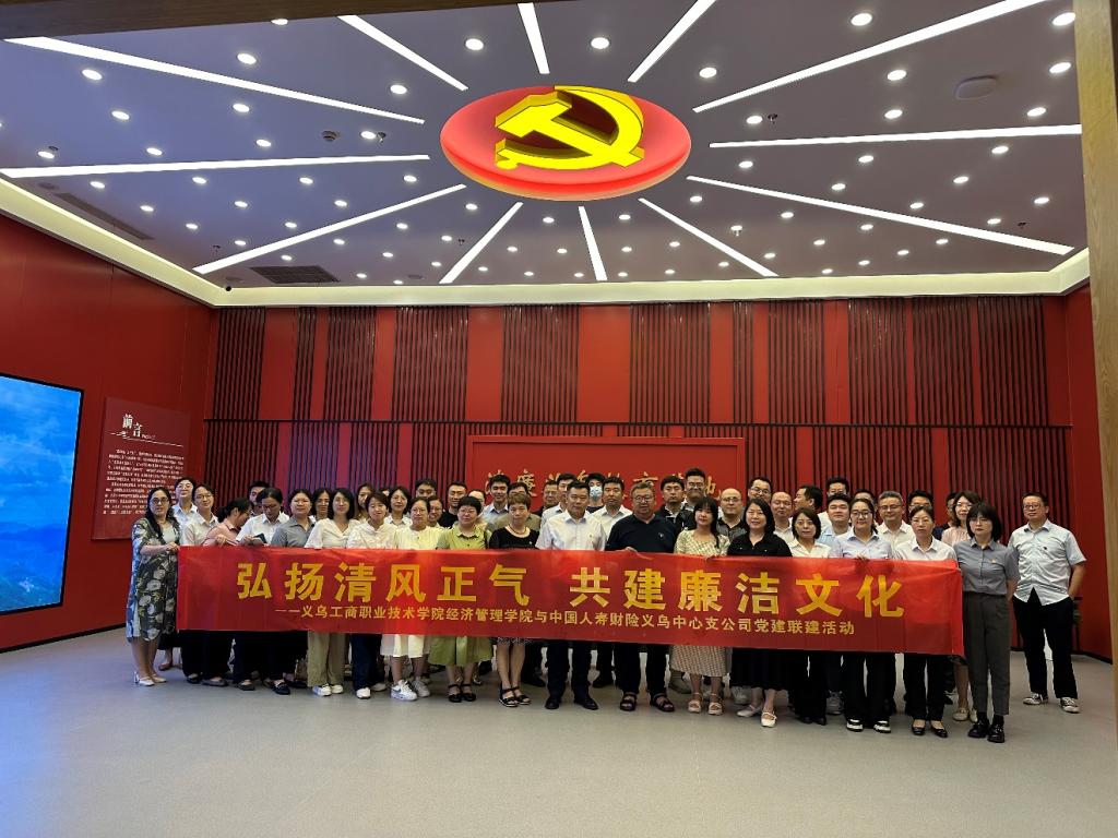 为加强清廉文化建设,营造崇尚廉洁的社会风气,5月28日,义乌工商职业技术学院LETOU国际米兰官网与中国人寿财产保险股份有限公司义乌中心支公司携手开展“弘扬清风正气,共建廉洁文化”为主题系列党建联建活动。