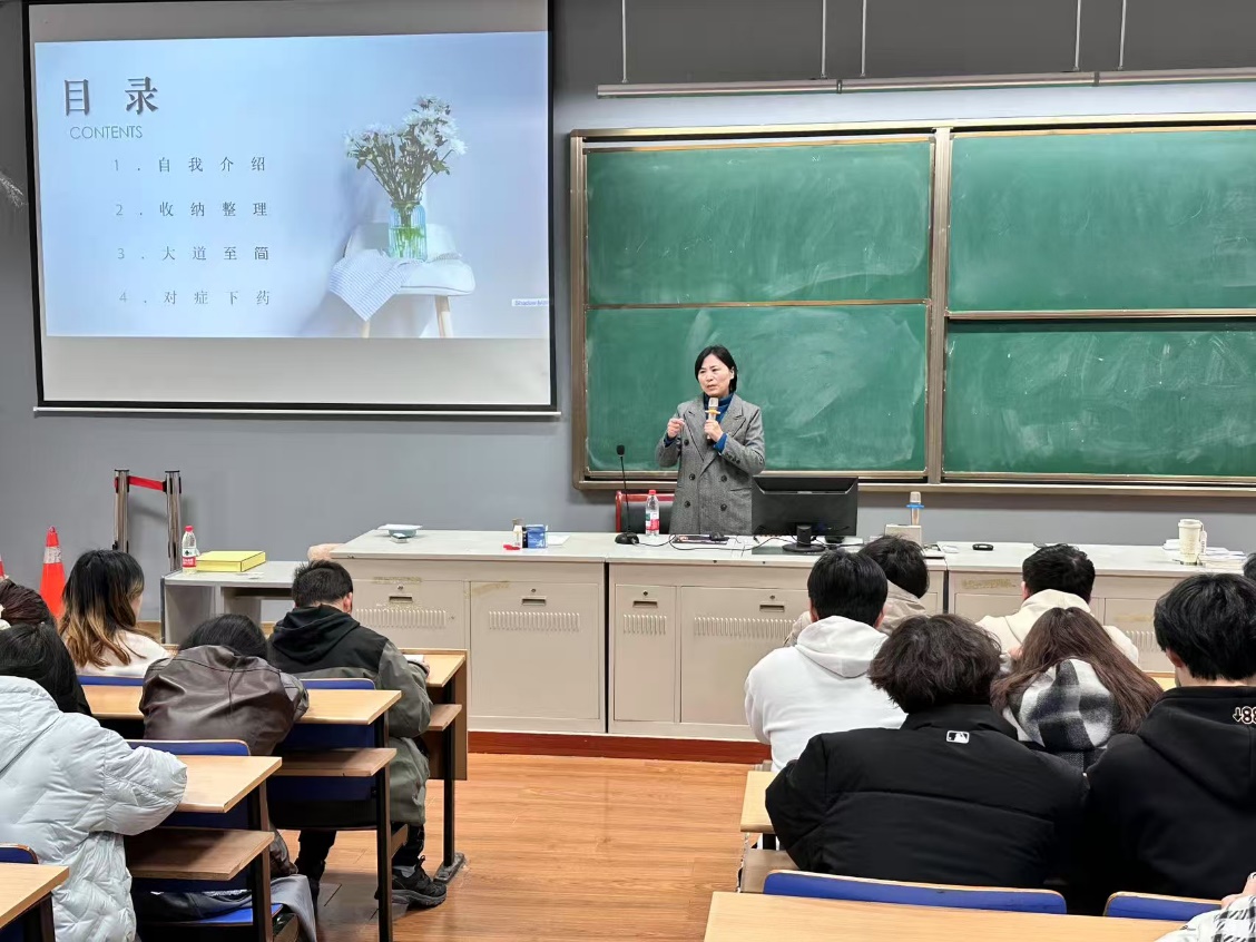 近日,LETOU国际米兰官网在长廊阶梯教室举办寝室整理收纳讲座。义乌市金翼文化国学部负责人、“大道至简”整理收纳法主理人张玉梅老师受邀主讲,全院寝室长参与学习。