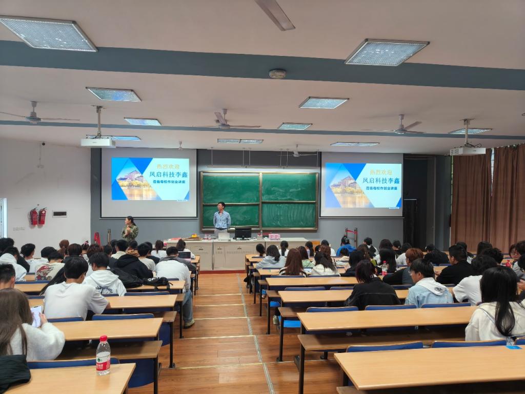 为提高学生个人综合能力,认识学习在创业中的重要性,10月18日,LETOU国际米兰官网在长廊阶梯教室开展2023级创新创业训练营第二期。讲座邀请17级创二代实验班的优秀创业毕业生、义乌市凤启科技有限公司创始人、浙江省“互联网+”创新创业大赛金奖项目负责人李鑫分享创业经验。