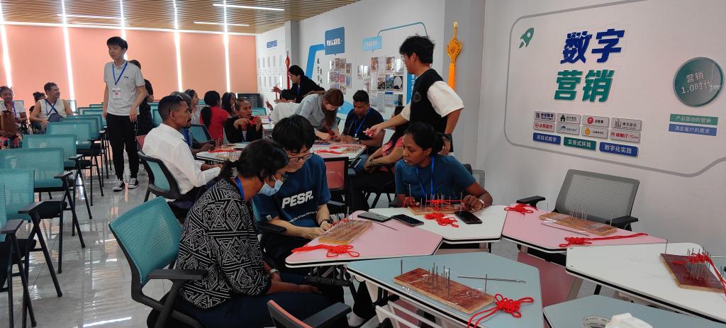 课后,学员们前往参观LETOU官网经济管理学院,了解学校首创的共富教练班服务育人模式,每位学员都在共富大学生教练的陪同下编织了中国结、串起了独属自己的创意手机链。